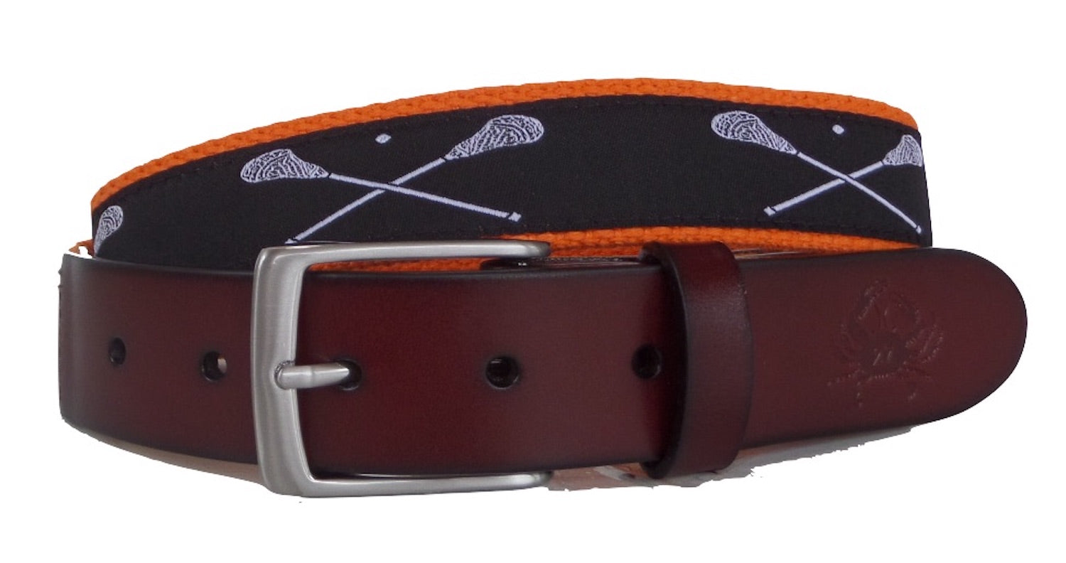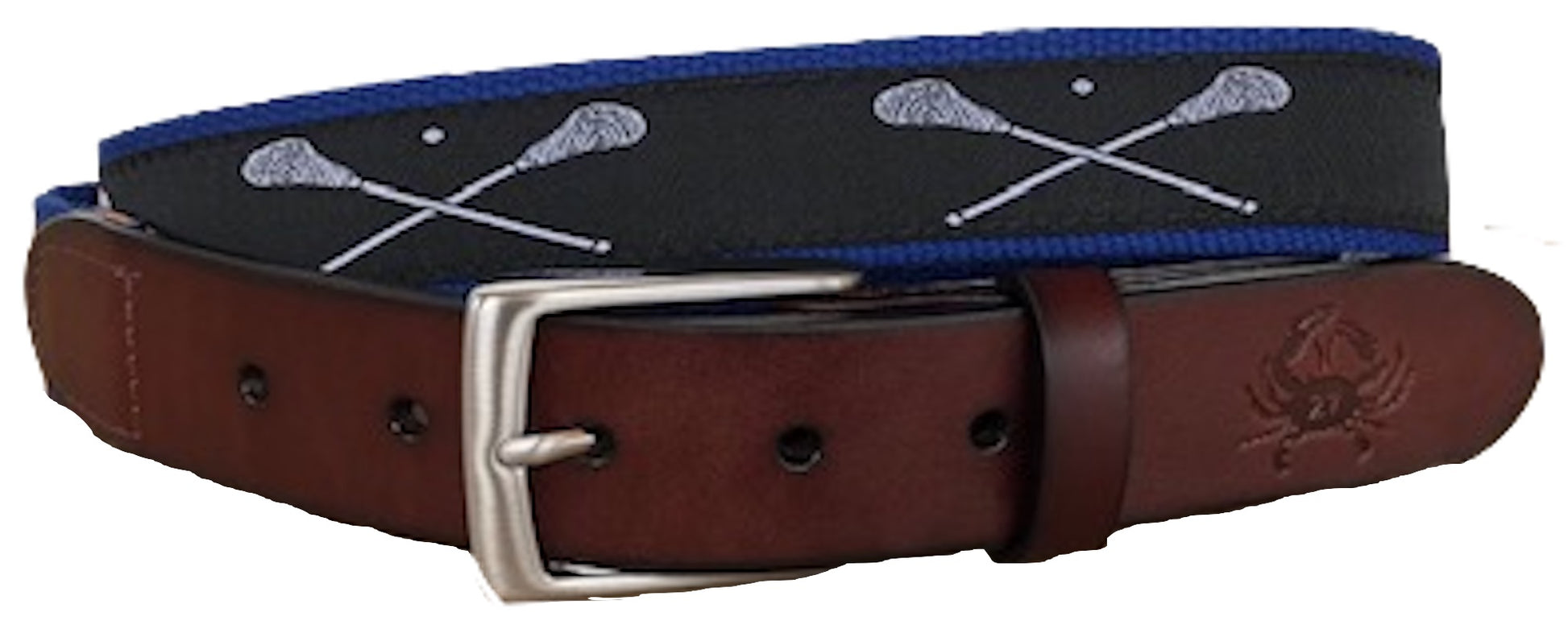 - Ribbon is a repeated pattern of crossed lacrosse sticks, sewn onto a 1.25" wide webbing.