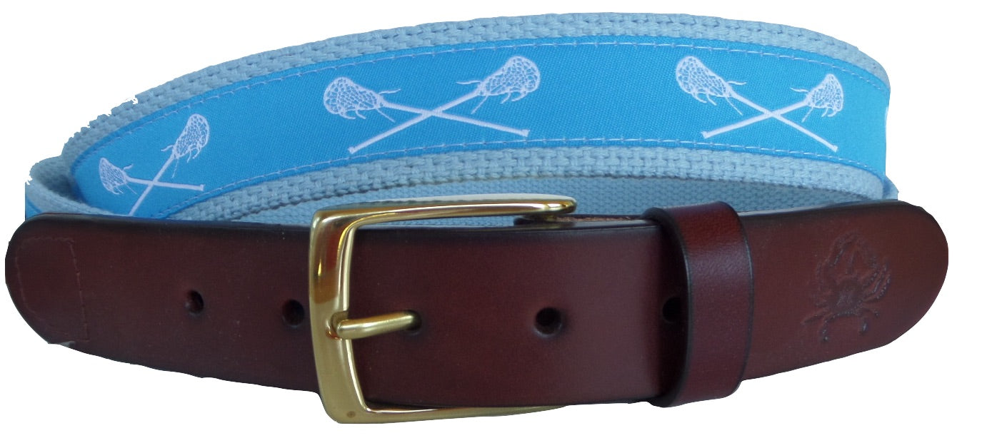 - Ribbon is a repeated pattern of crossed lacrosse sticks, sewn onto a 1.25" wide webbing