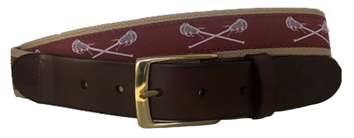 This classic lacrosse print was designed by us and made for you! This ribbon belt is from our Signature Series Line. Easily show off your casual style and pair this belt with any style khakis, jeans or your favorite cargo short. Each belt is hand made in the U.S.A and made to order. This belt is pictured with our 1.25" Brass color buckle. Other Styles are available in the drop down menu.