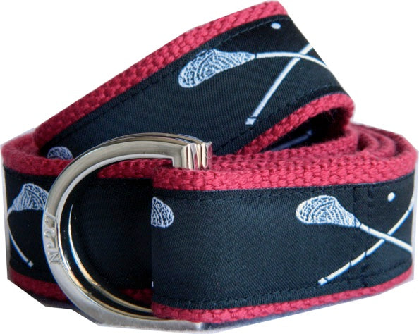 - Ribbon is a repeated pattern of crossed lacrosse sticks, sewn onto a 1.25" wide webbing