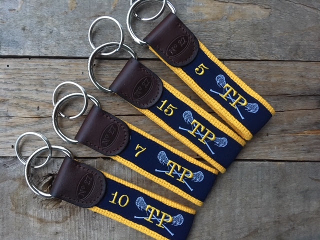 Our art team will help you with your team colors to make a custom look with our shop lacrosse ribbon. Let us help you put together key chains, belts, bags...etc. Customize it even further with leather belt stamping and personal monograms.