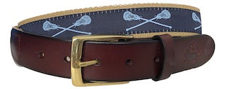 - Ribbon is a repeated pattern of crossed lacrosse sticks, sewn onto a 1.25" wide webbing