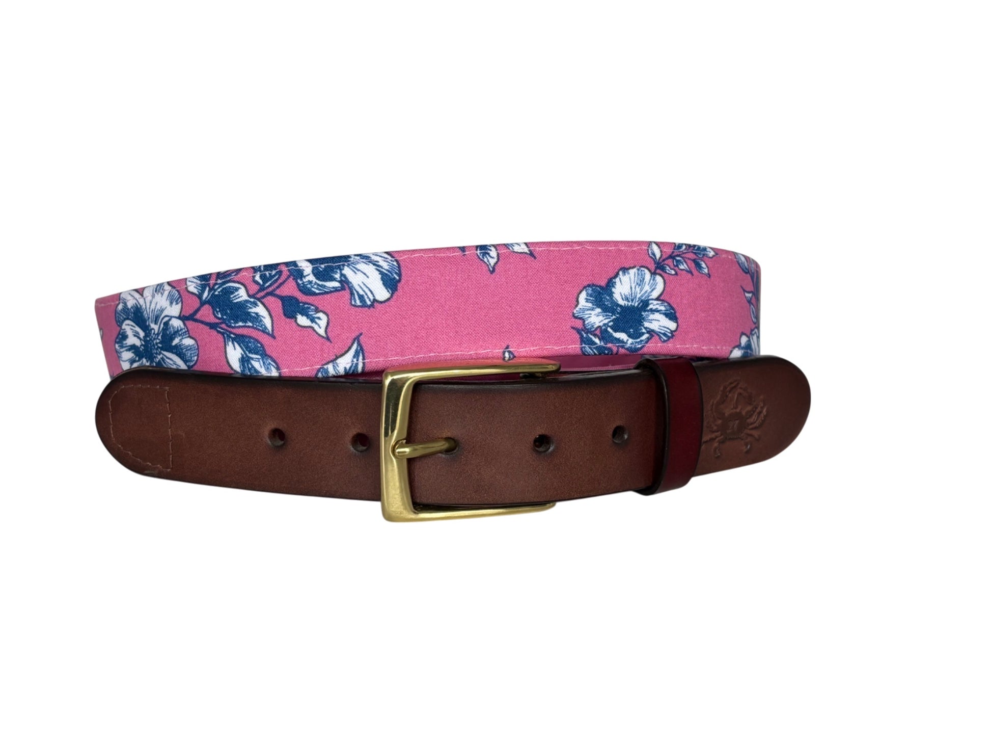 Blue Flower on Rose Pink Leather Belt (Copy)