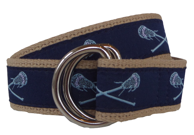 Light Blue Lacrosse Sticks on Navy Ribbon D-Ring Belt