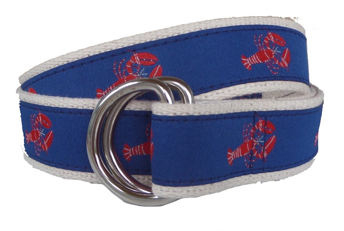 This custom made lobster ribbon print was designed by us and made for you! This ribbon belt is from our Signature Series Line. Each belt is hand made and made to order. Easily show off your casual style and pair this belt with any style khakis, jeans or your favorite cargo short. Each belt is hand made in the U.S.A and made to order. This belt is pictured with our polished steel d-rings. Other buckle options and webbing colors are available in the drop down menus.