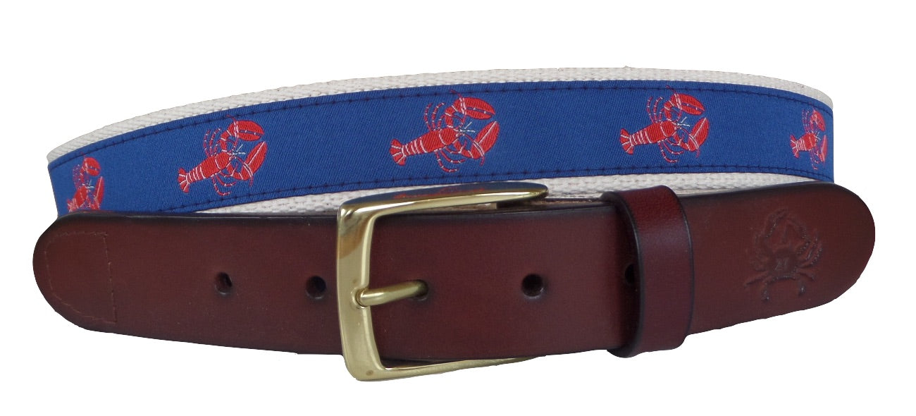 This nautical lobster print was designed by us and made for you! This ribbon belt is from our Signature Series Line. Easily show off your casual style and pair this belt with any style khakis, jeans or your favorite cargo short. Each belt is hand made in the U.S.A and made to order. This belt is pictured with our 1.25" Brass color buckle. Other Styles are available in the drop down menu.