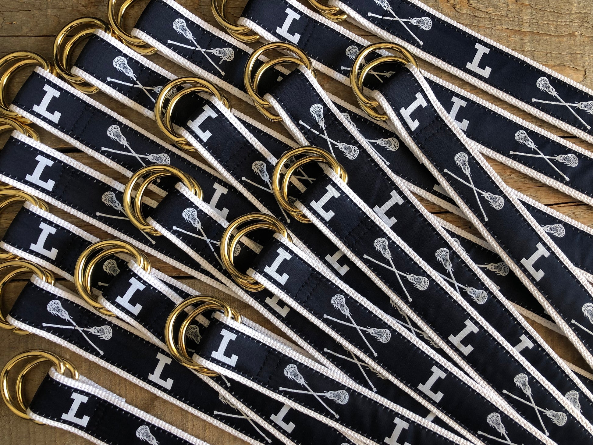 Our art team will help you with your design or you can provide your own. With permission we can use y our school logos and colors to make a ribbon just for your team. Customize it even further with leather belt stamping and personal monograms.