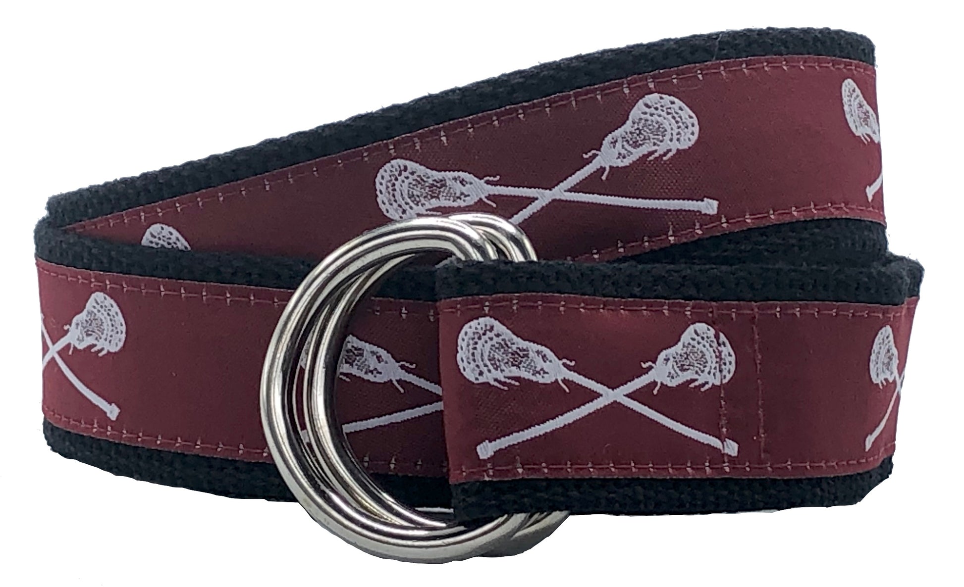 - Ribbon is a repeated pattern of crossed lacrosse sticks, sewn onto a 1.25" wide webbing