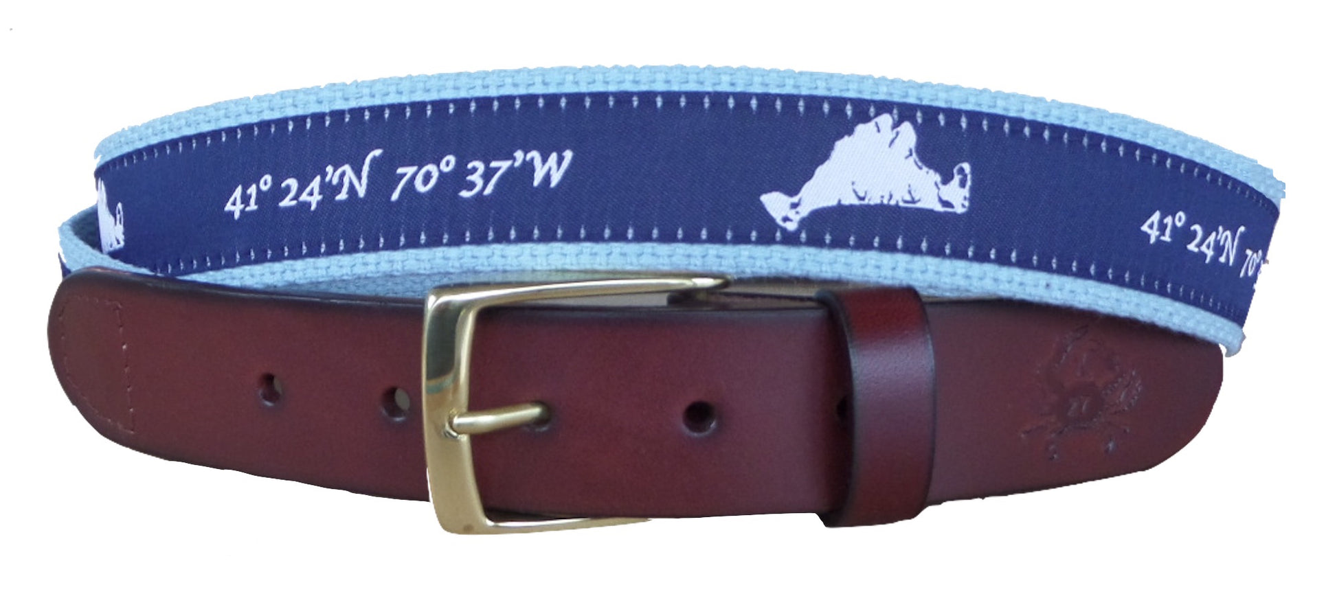 This classic Nautical Martha's Vineyard Island print was designed by us and made for you! This ribbon belt is from our Signature Series Line. Easily show off your casual style and pair this belt with any style khakis, jeans or your favorite cargo short. Each belt is hand made in the U.S.A and made to order. This belt is pictured with our 1.25" Brass color buckle. Other Styles are available in the drop down menu.