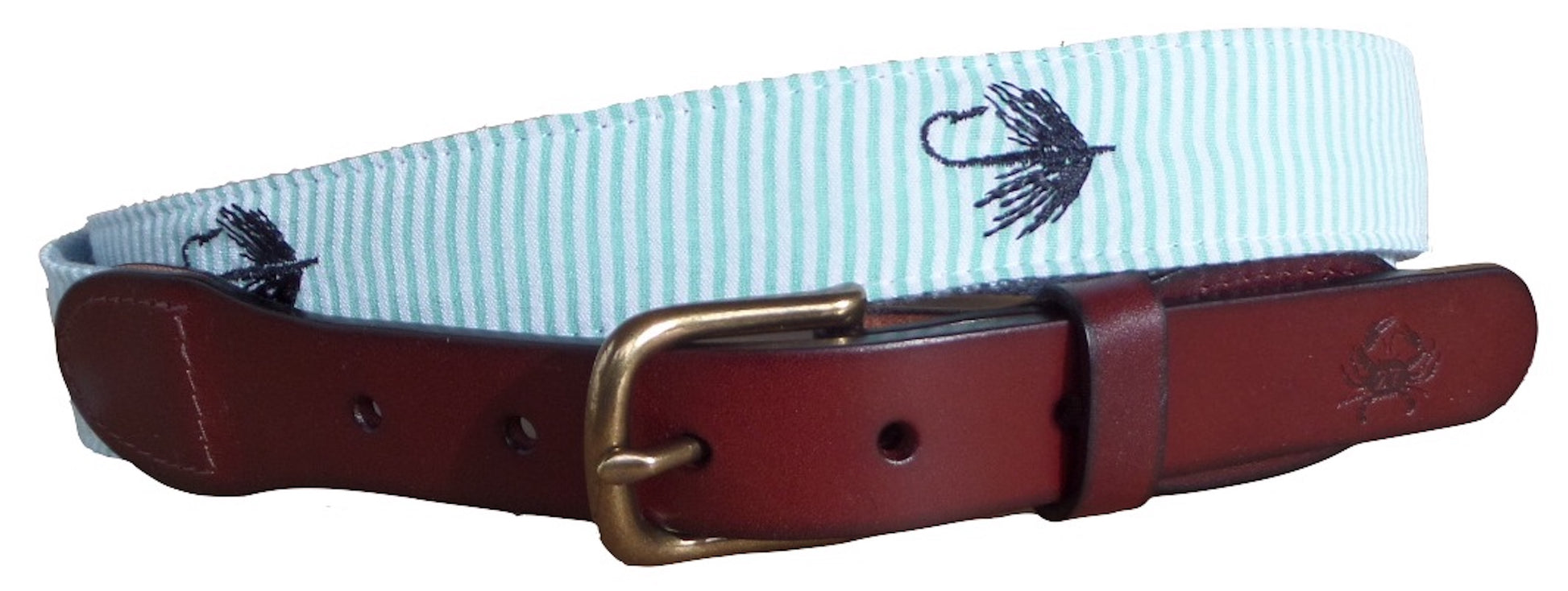 Navy Fly Fishing with Green Seersucker Leather Belt