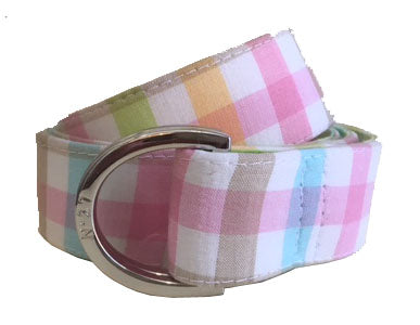 This classy pastel fabric was selected by us and made for you! This fabric belt is from our Signature Series Line. Each belt is hand made and made to order. Easily show off your casual style and pair this belt with any style khakis, jeans or your favorite cargo short. Each belt is hand made in the U.S.A and made to order. This belt is pictured with our polished steel d-rings. Other buckle options and webbing colors are available in the drop down menus.