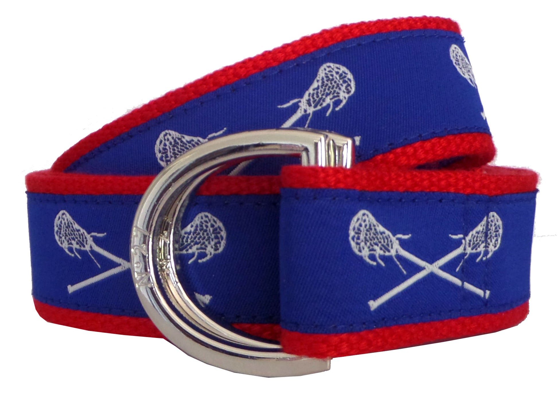 - Ribbon is a repeated pattern of crossed lacrosse sticks, sewn onto a 1.25" wide webbing
