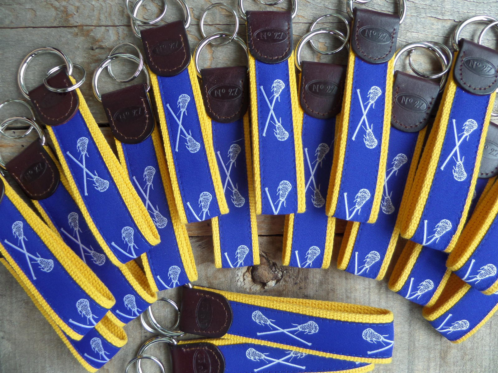 Our art team will help you with your team colors to make a custom look with our shop lacrosse ribbon. Let us help you put together key chains, belts, bags...etc. Customize it even further with leather belt stamping and personal monograms.