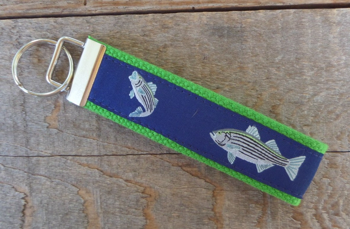 This nautical classic striped bass print was designed by us and made for you! This key chain is made to order. You select the webbing, hardware style and length. If you have a custom request (monogram or other) please just let us know.